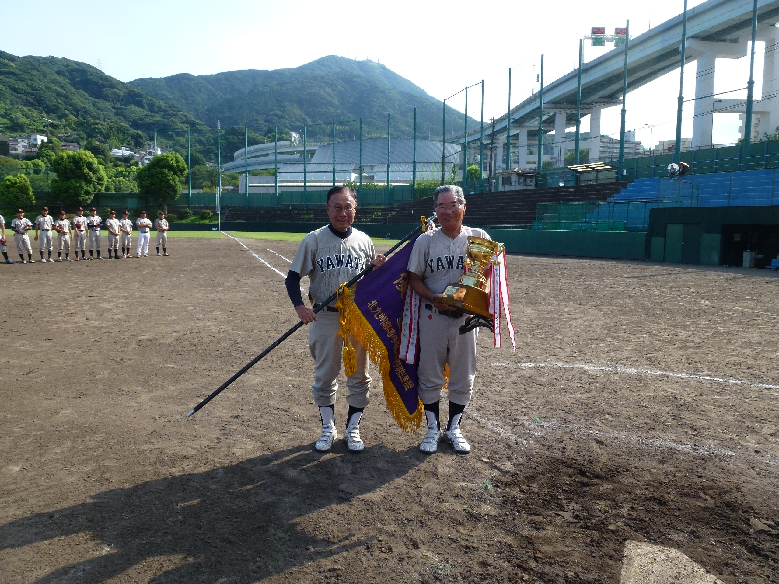 優勝した八幡高校OBの選手たち