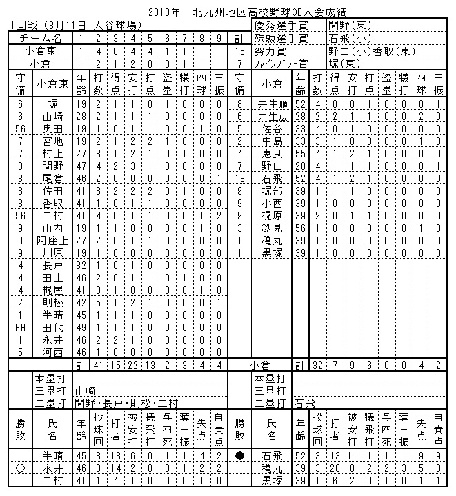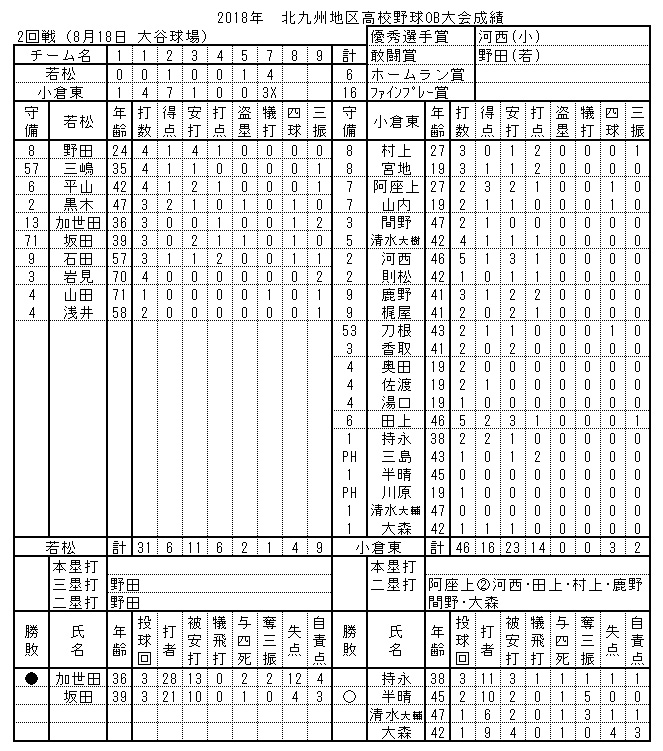 八幡高校OBは圧倒的な強さで勝ち進み、戦力の充実ぶりが印象的でした。